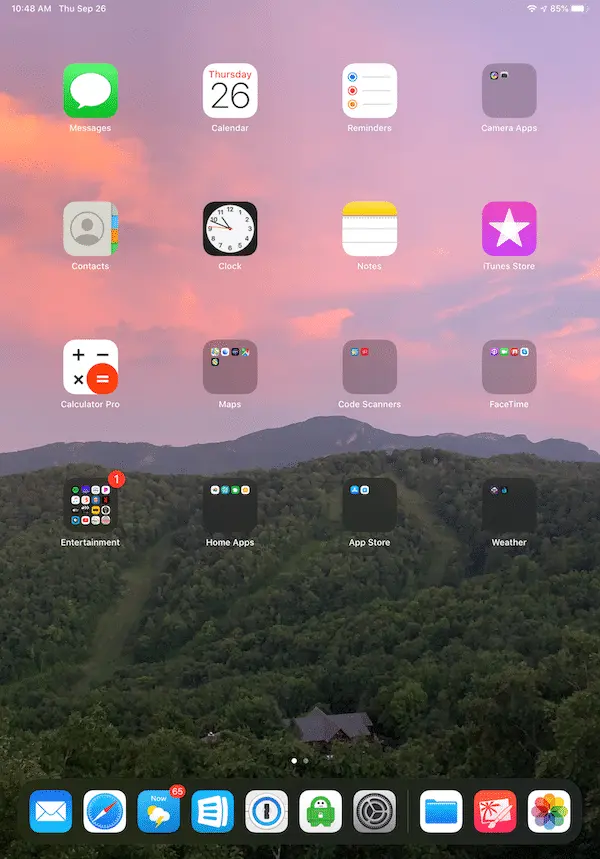 A beautiful reminder of your visit.After installing iPadOS on my Pro yesterday, I did not like the folder color used w/ my old wallpaper - SO, after several years of use changed the 'home screen' background to a pic taken on our recent trip to the NC mountains - brings back memories in that 4700+ ft high cabin!Dave