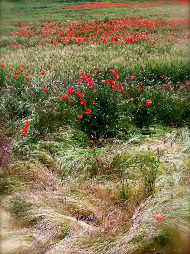 From last summer. A filed in bloom. I was passing by and stopped to take the picture about 15 miles out of Walla Walla, WA. Enhanced, of course. Not that it wasn't pretty before the digital tomfoolery.