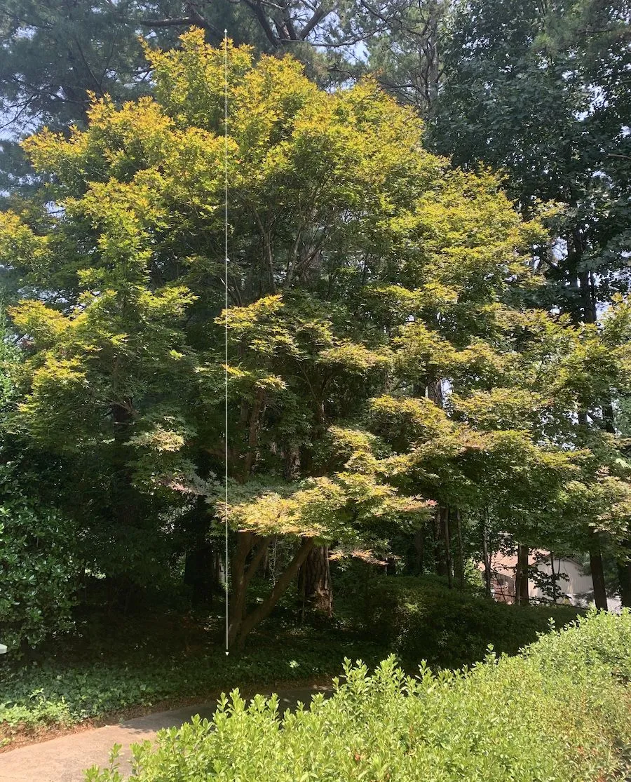 Well, its parent (probably close to 50 years old) in the back shown below is likely 40+ ft tall (and needs to be trimmed) - not sure exactly the 'variety', i.e. its leaves are not as bright red in the fall as expected but may be an age-related trait? So, the 'baby' in the front yard will certainly get a lot bigger but may take another 10 years or so, my guess? DaveHow big will it get?