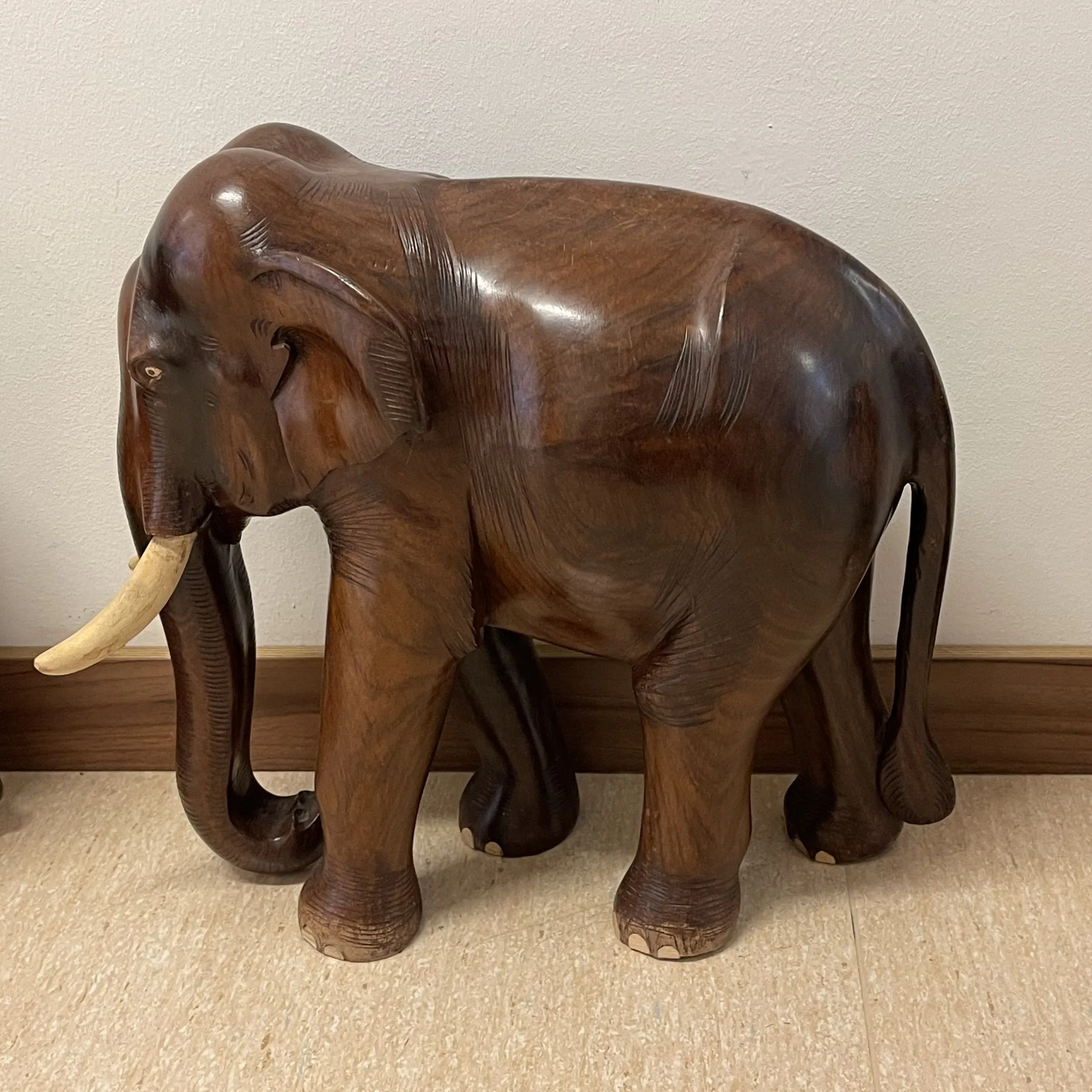 It was made of wood, and about 30 cm tall.Johanna - beautiful elephant - curious how tall is the object and what material is it made from? Wood, ceramic, combo, or other? Thanks - Dave