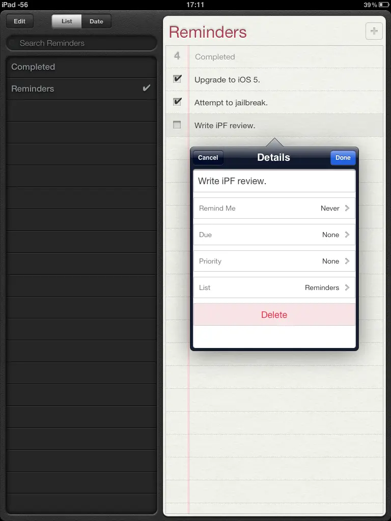 Reminders, just a simple to do list. Haven't gotten it to work yet. I can't figure out how to make a reminder! See pic 6.
