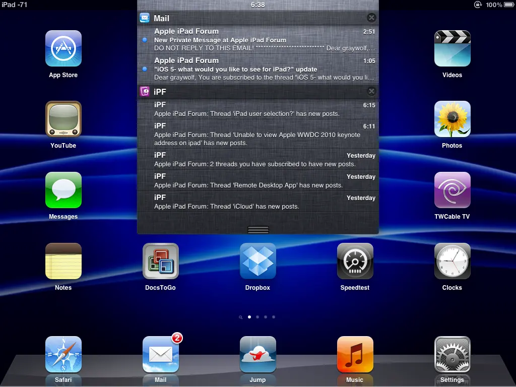 Notifications! Band new. They don't bother you anymore! On your lockscreen, see pic 9. On any screen just pull down the status bar. See