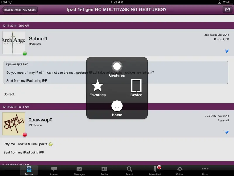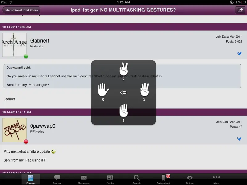 0pawwap0 said:Hope a new update will allow ipad 1 to use multi-gestures like you can swipe 4-5 fingers to switch between apps