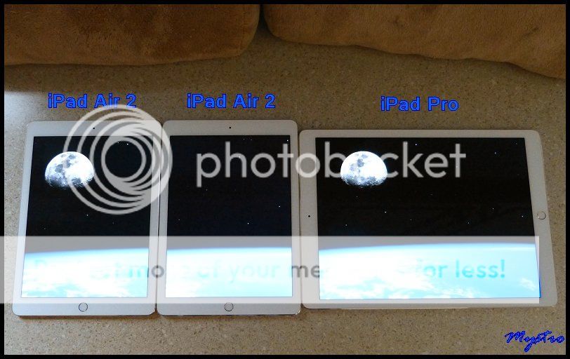 Here is few pics I took today with my Pro and two of my Air 2's. I tried to get the pic exactly to scale in each tablet.