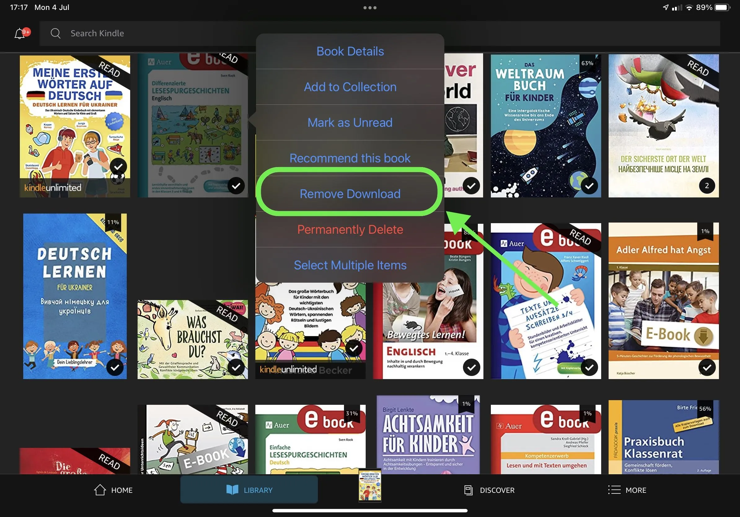 I keep reading ways to remove books from your kindle app so they’re not permanently deleted. All the features they mention I don’t have. I took screenshots. Any help appreciated. I have no “device” on the bottom of my ipad or iphone.