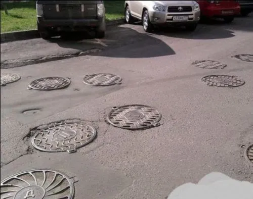 All I can think of is that there were things in that area over the years that the maintenance crew had to work around. You'd think they would plug some of those up or something.I don't think there are enough manholes on this street.View attachment 64776