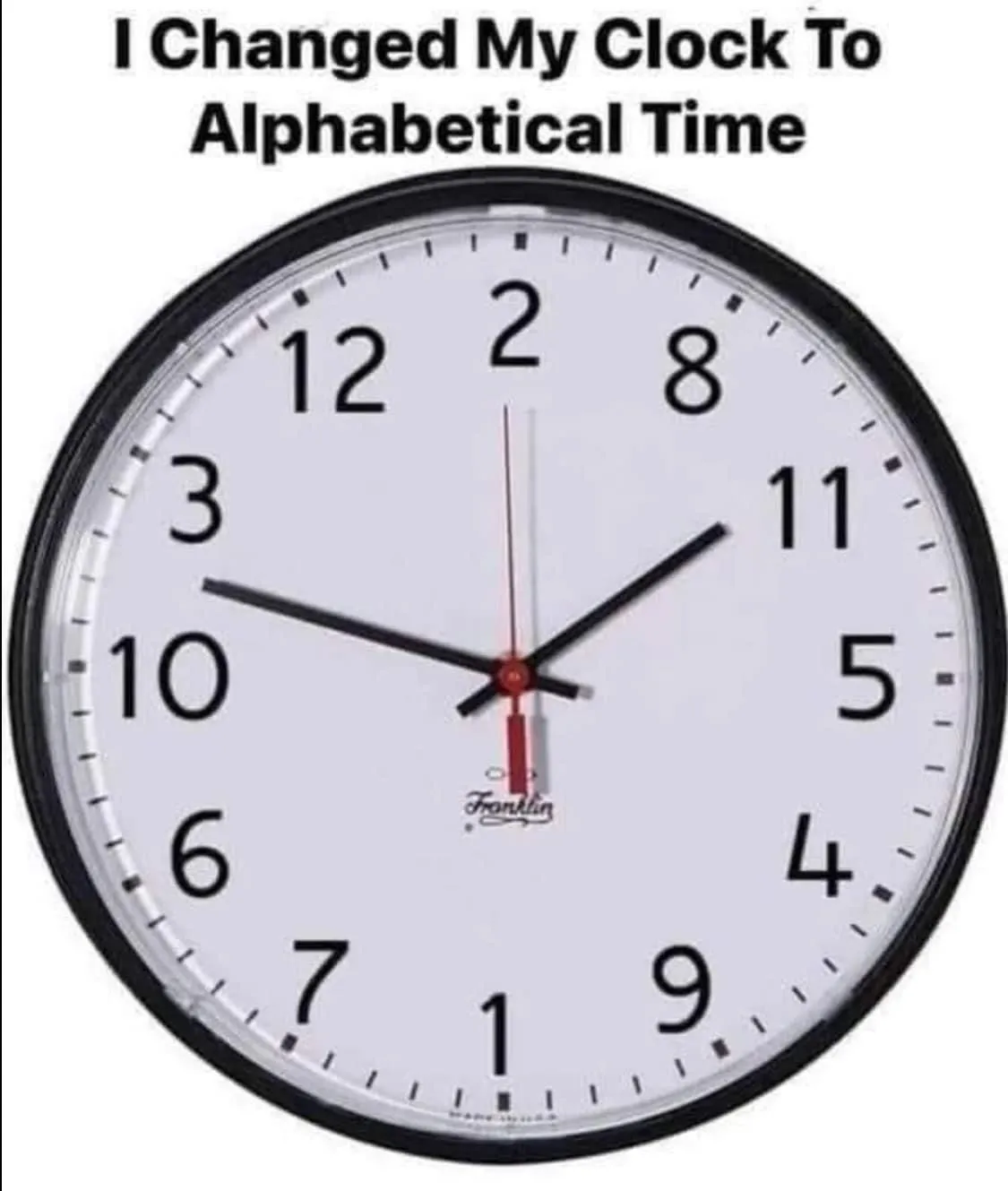 J. A. said: The numbers from one to twelve are in alphabetical order: eight - eleven - five - four - … Click to expand... Haha
