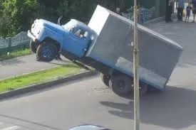 It's not snow, it could be a car. You're right, there's something with the wheels and shadows.You're asking a weighty question there sci. Looks to be a doctored photo, not sure. The front wheels seem to be resting on the ground. The shadows seem wrong with the truck not throwing the right kind of shadow. And is that snow on the foreground but not on the footpath? Great photo...Andrew Sent from Oz using Tapatalk