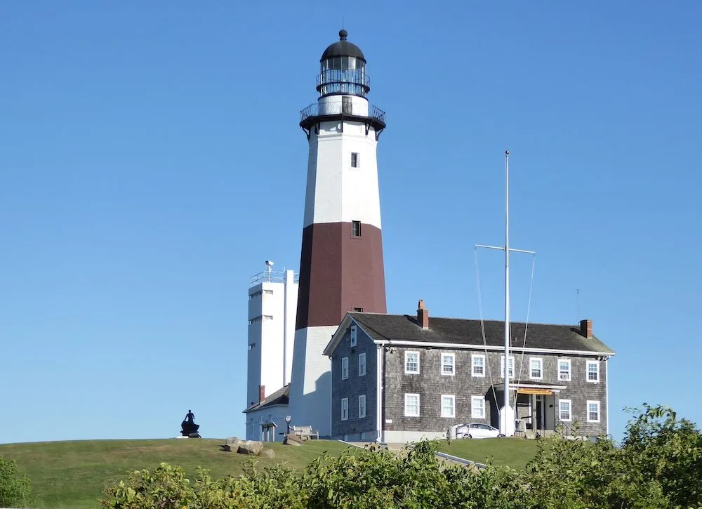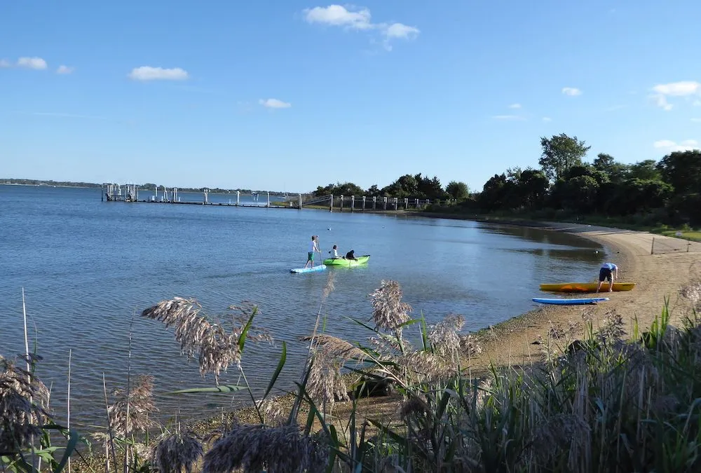 Ninety-nine acre Shadmoor State Park, located one quarter-mile east of Montauk Village, features more than 2,400 feet of ocean beach accessed by two stairways. The park, named for its open, rolling geography and the shadbush that grows there, also has bluffs, freshwater wetlands that are part of the preserve, hiking trails and elevated platforms for birdwatching and enjoying the shoreline views. The park's foliage includes black cherry trees and clusters of the rare and federally-endangered sand plain gerardia plant. Of historical note, two concrete bunkers, erected during World War II and once equipped with artillery guns to protect the coast from enemy invasion, remain on the property (Source).