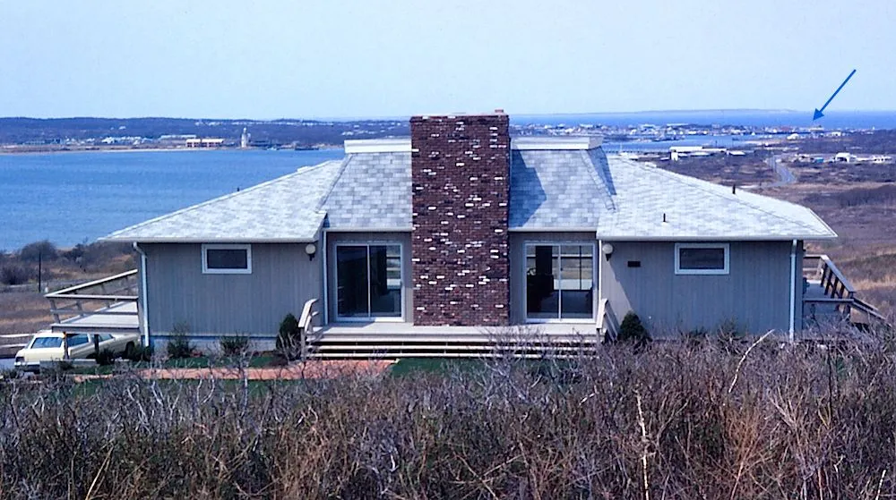 First pic of Sylvia on her graduation from NYU Medical School - followed by the Montauk house in its youth before all of the bushes & shrubbery grew up (arrow on Gosman's Dock) - the view is toward Lake Montauk and LI Sound (going to the left on the deck, the Atlantic Ocean comes into view); finally, pics of our young son w/ each of his grandparents and the Lake. Dave