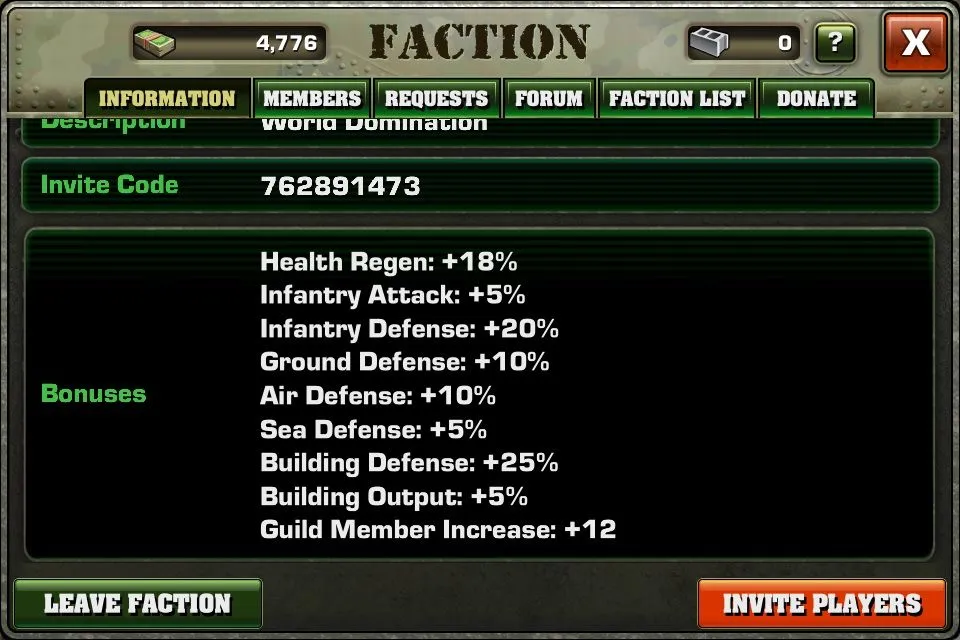 Hey, i tried sending you a pm, but my post count isnt high enough to do that. But I have requested to join the faction, and like my post said (Last post on previous page), I am a daily player and I can consistently donate to the faction ($1million+ per day). I want to join a faction because the last faction i was in, I donated many of my resources but noone else was donating so i had to leave. My id is 361 505 874 & my name on MW is Daniel.