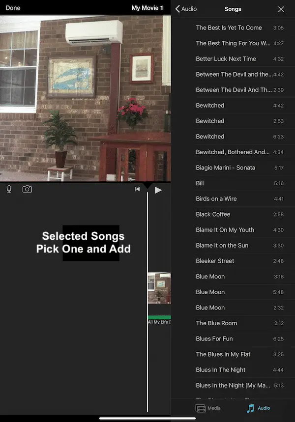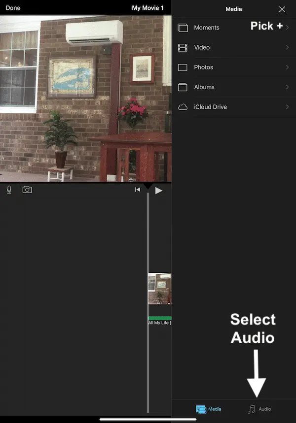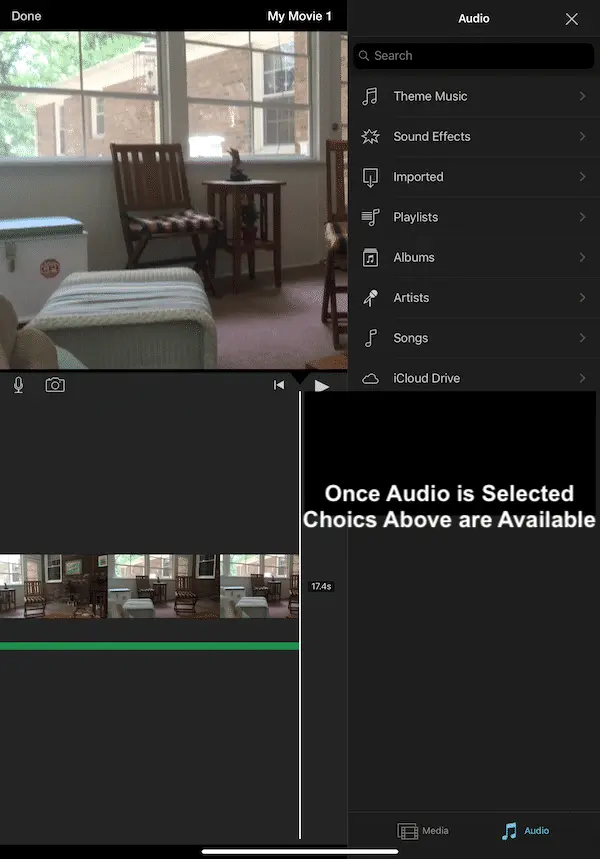 With your movie now taking shape, you might want to replace the standard audio with some music. To do this tap the + button and then select the Audio option. Here you can choose from the Theme music that comes with iMovie, a range of Sound Effects, or any music you have in your Apple Music app.
