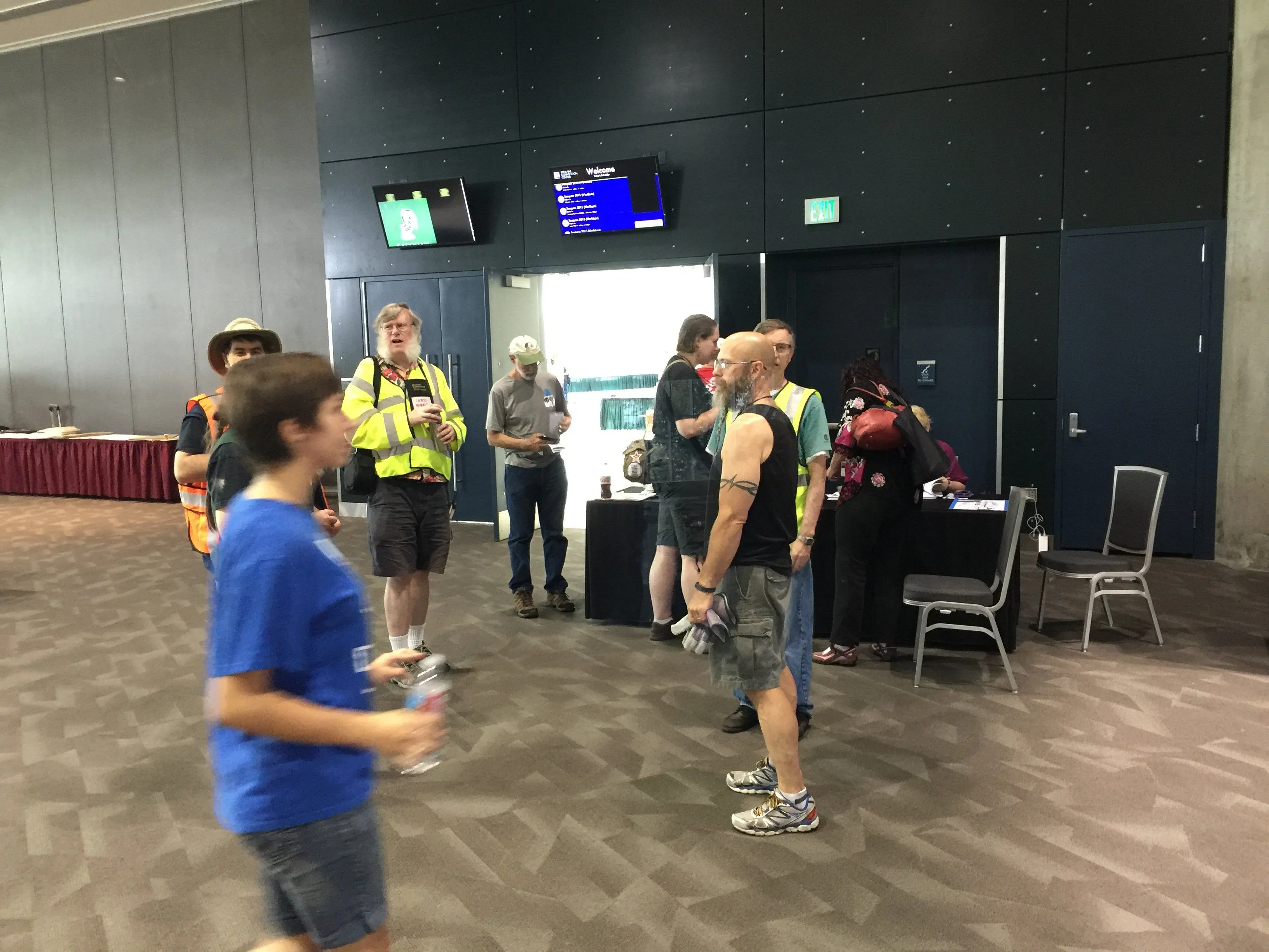 It's going to be big! This is an excellent way to spend a vacation.Setting up the convention centre for the World Science Fiction Convention.