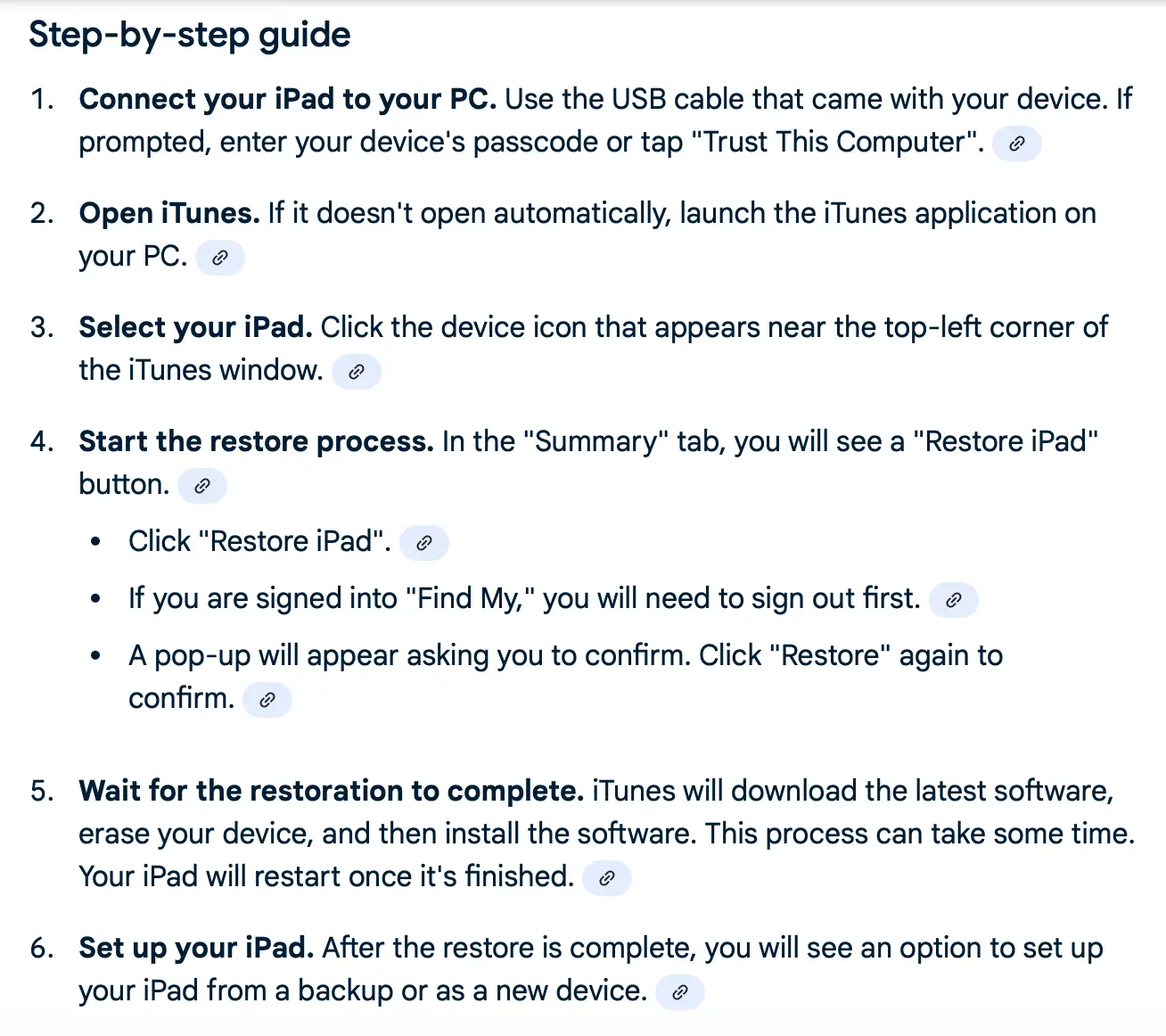 We have searched the Web for clues, including connecting it to our PC. the iPad show as connected under My PC and we are supposed to get a prompt for opening an account. There is none. When we click on the iPAD icon , I only get storage access with various jpg photos. Can anybody help?