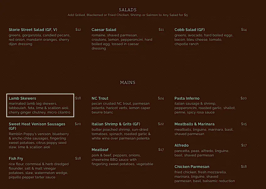 Dinner - Storie Street Grille