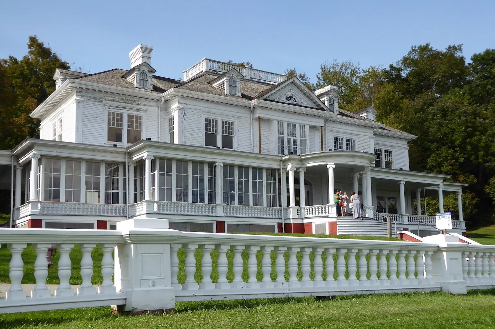 National Park Service and is open to the public. It contains 3,500 acres (14 km2), a 16-acre (65,000 m2) trout lake, a 22-acre (89,000 m2) bass lake, and 25 miles (40 km) of carriage trails for hiking and horses. The main feature of the park is a twenty-three room 13,000-square-foot (1,200 m2) mansion called
