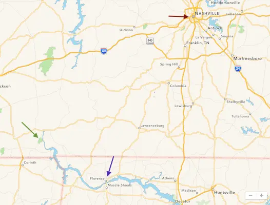 Susan & I just returned from a 5-night trip to the west of North Carolina (our home state, USA) - flew into Nashville, TN (Tennessee), picked up a rental car, and drove to Florence, Alabama (AL) - spent 3 nights there @ a great Marriott Hotel - then back to Nashville (about 2+ hrs drive) for 2 more nights (our 4th visit to Nashville but first part of the trip were NEW experiences for us); I put about 500 miles on the car w/ this adventure.