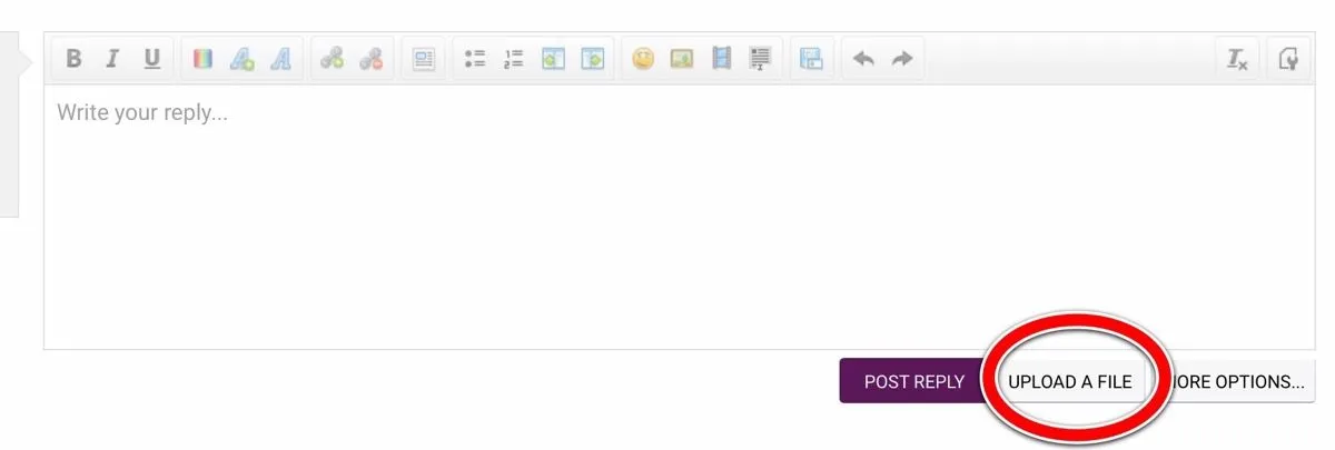 The upload a file button will not appear if you're editing a post that already has pictures in it. That's when twerppoet's advice comes in handy.What SciFan said. If you don't see the Upload A File button, choosing the More Options button will usually take you to an editor widow that does show Upload A File.