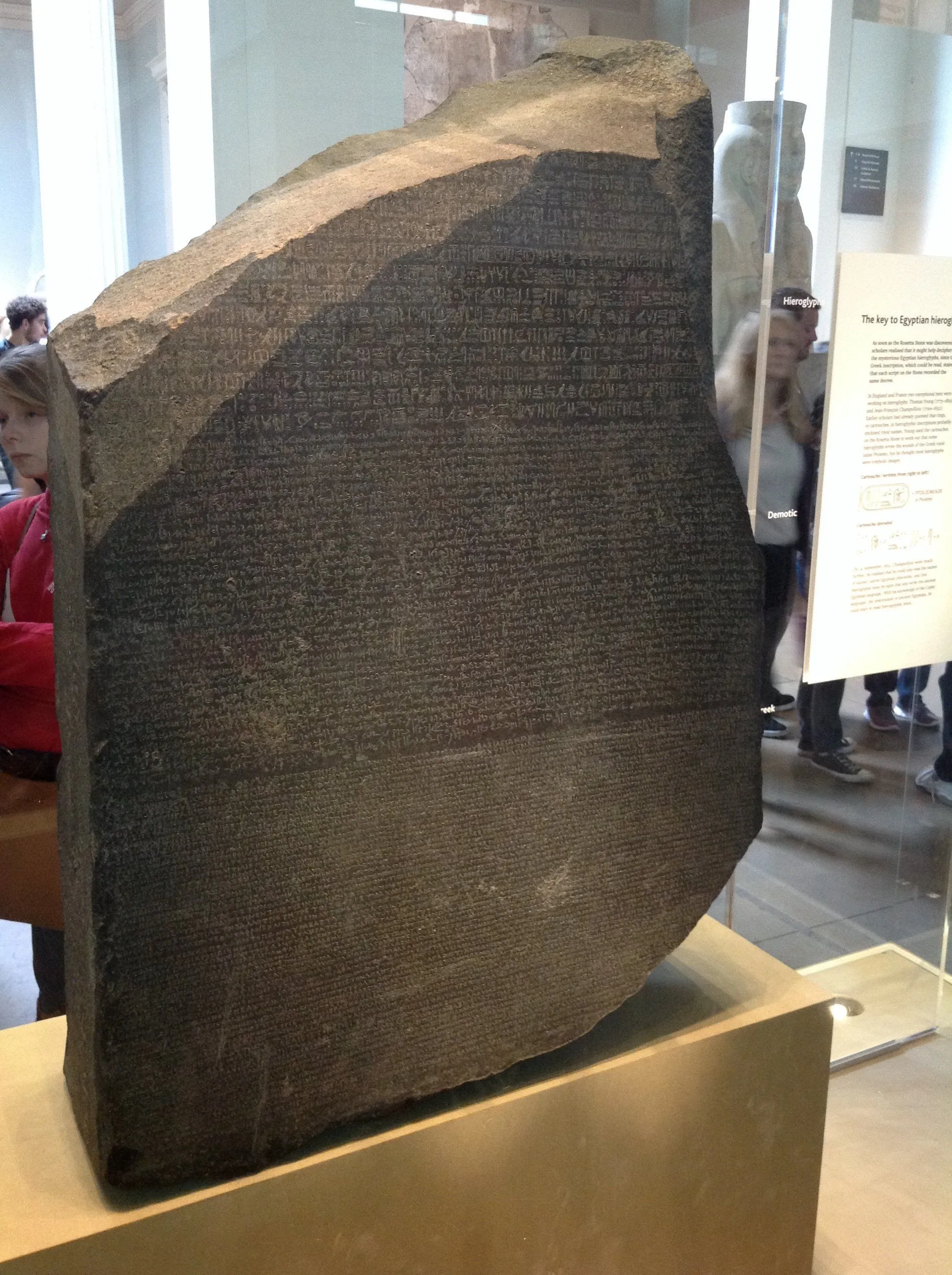 Here’s my photo of the Rosetta Stone, taken during my visit to the British Museum in 2014.