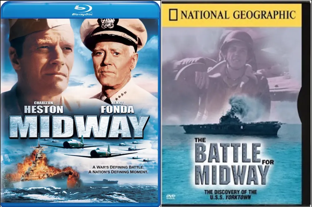 Pics below show the relationship of the Midway Islands (small atolls/isles) to Hawaii - the 4 Japanese aircraft carriers are diagrammed. There is a 1976 star-studded (Heston, Fonda, and many others) movie which is not great (I do not own the film); a much better portrayal of the naval engagement and the search for the USS Yorktown is Robert Ballard's explorations in the late 1990s (the second 'documentary'). Dave