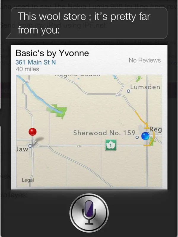 I tried it and got the name and distance to a wool store 40 miles away, in the next city.