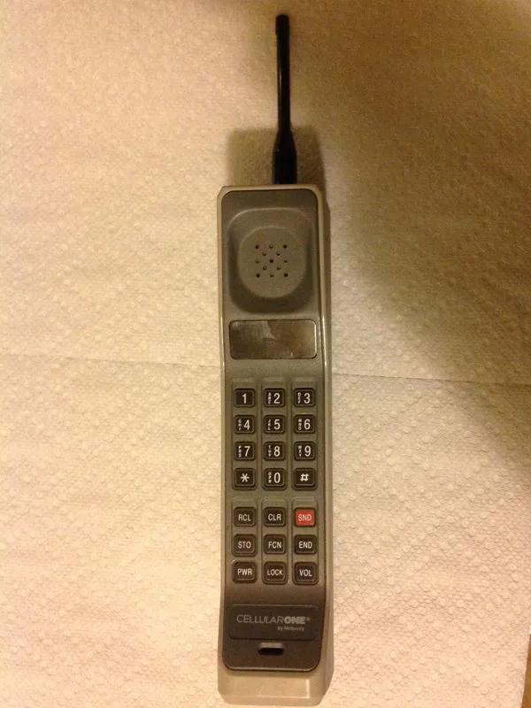 An old Motorola cell phone from the early 1980’s. The original owner paid over $2500.00 for it! The battery took 8 hours to charge and gave you 30 minutes of talk time.