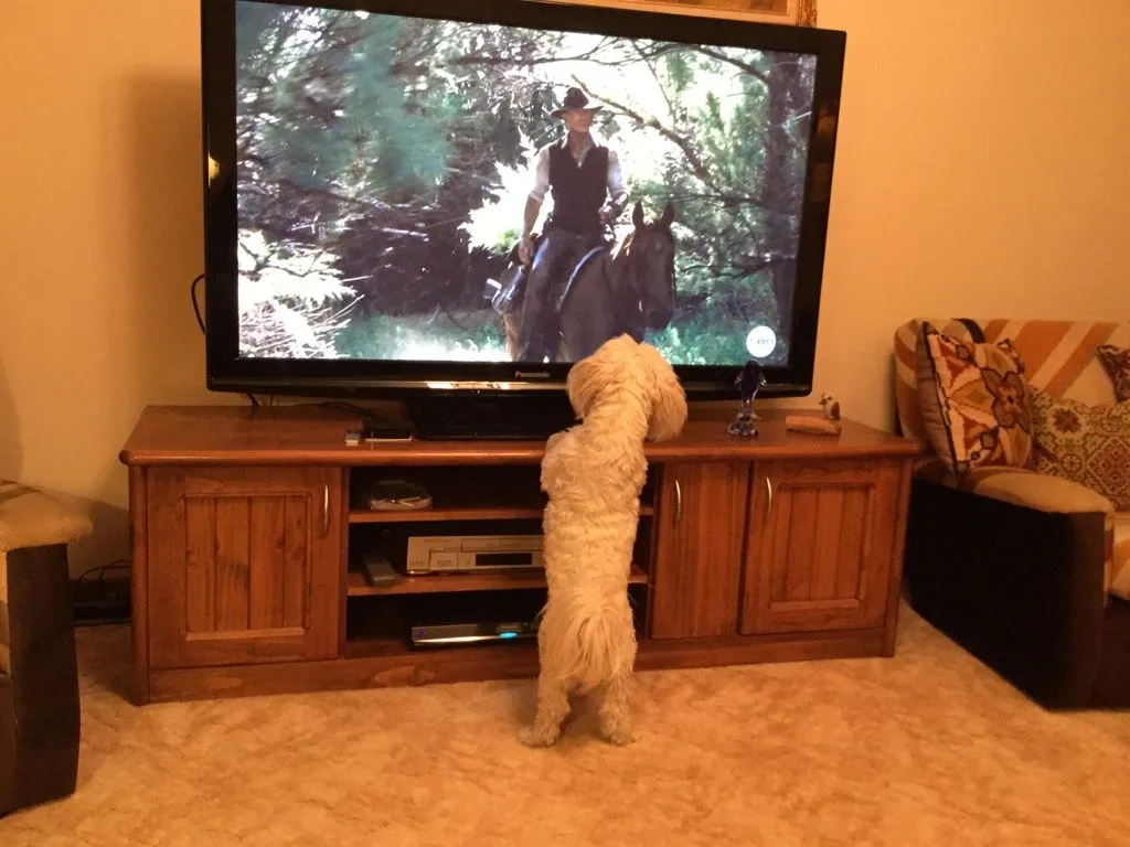 Unless it's another dog appearing on the screen, when he goes ballistic and the barking can make one deaf. (Don't ask about cats)