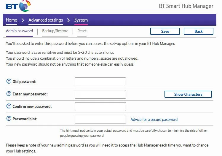 But it doesn't recognise the new hub. I cant put the password key in, after typing the new hub type in.