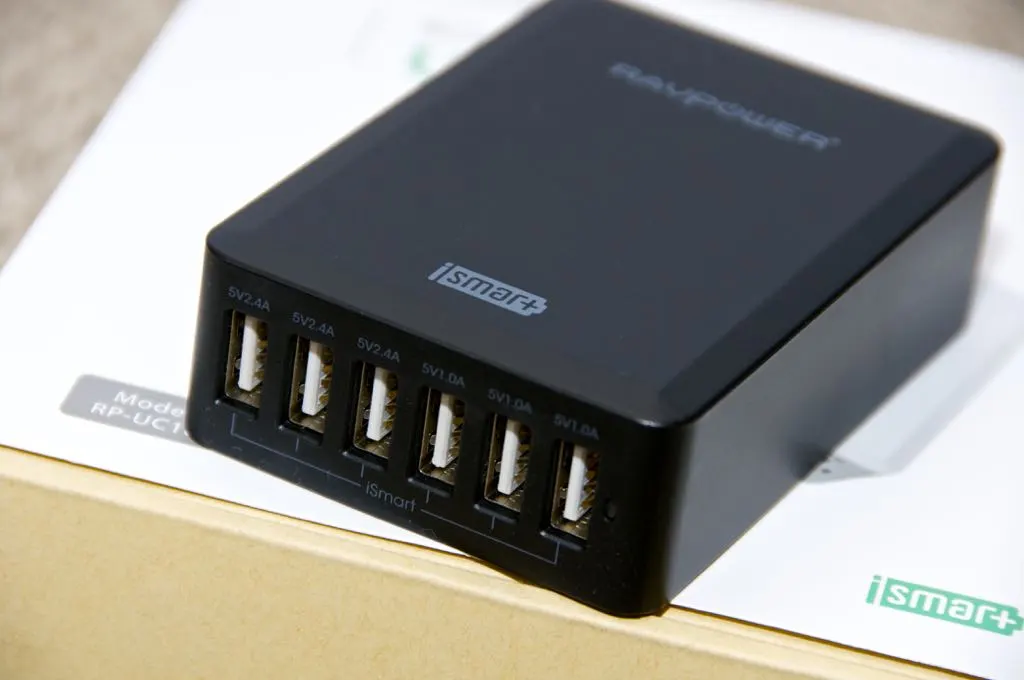 The total output of this charger is 10A meaning you can use all six USB ports for charging at the same time without any impact on charge time for the attached devices. This is important because not all chargers can claim to do this, some have a total output lower than the combined ports so the output from each port is throttled when all are in use meaning longer charge times. Kudos to RAVPower for this.