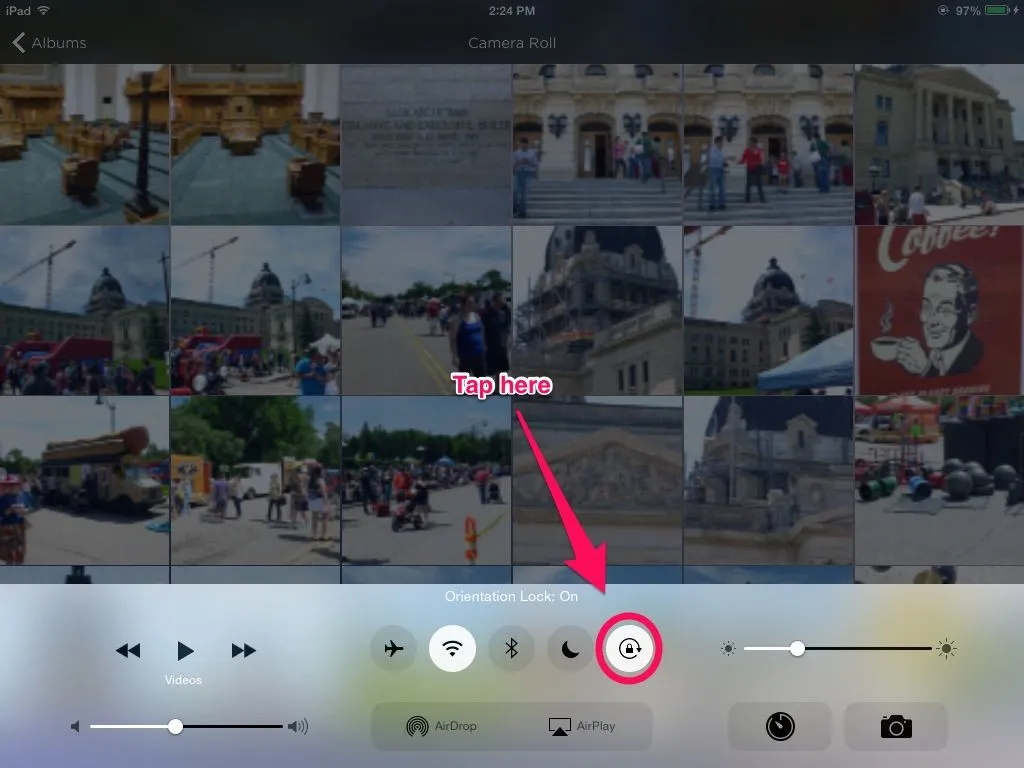 When I open the iPad and have it upright (in portrait) and turn it horizontal (in landscape) the display screen won't rotate to show as landscape. And yet when you actually go into the app e.g. Emails they will show in landscape.