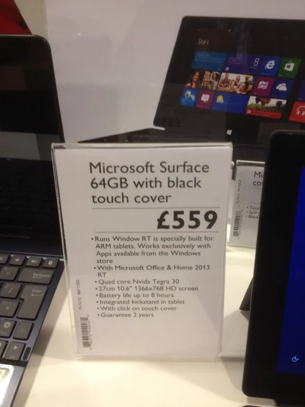 Finally today I see the Microsoft tablet for the first time, can't say how good it is but 1st impression is that it's nice, the screen quality is sharp and good, the kick stand feels solid but the key board material seemed rough. Regarding the operating system, it was windows 8 and as I not familiar with it I should not judge it here.