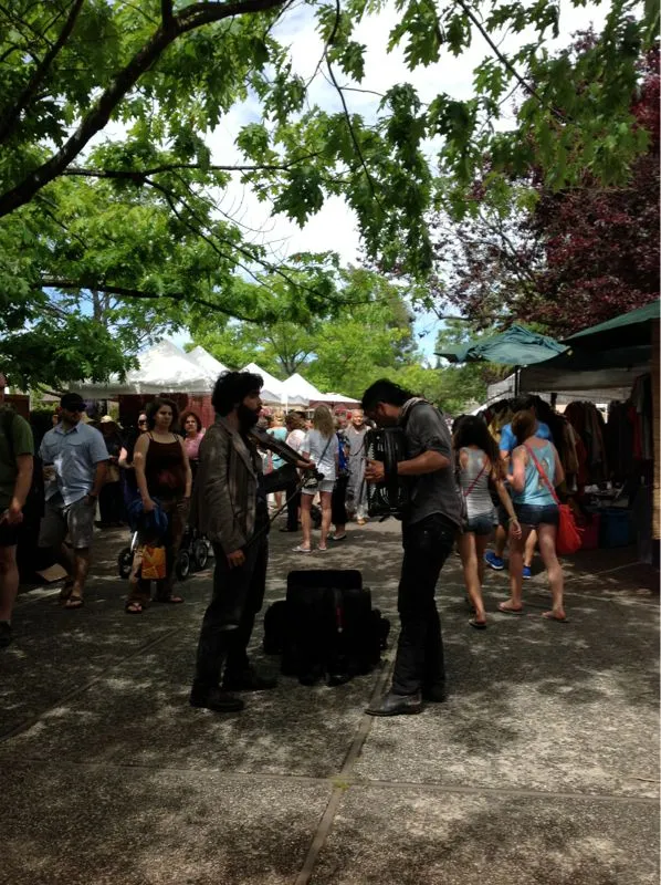Here is a shot of two energetic buskers at our market this afternoon.They played gypsy music and are always a hit?