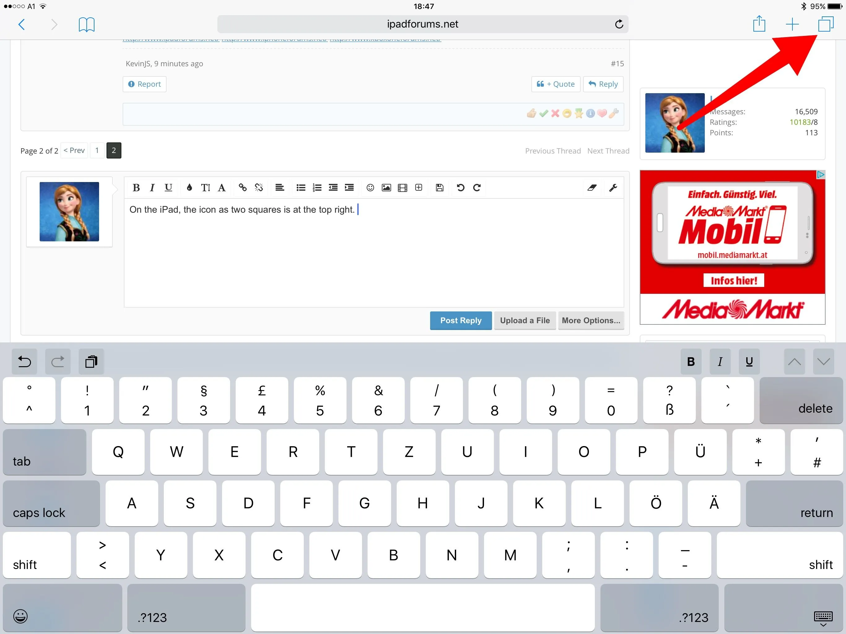 On the iPad, the icon as two squares is at the top right.