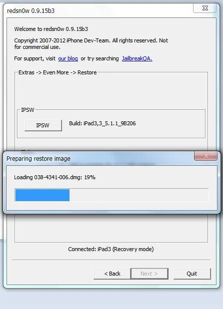 3rd: after it finish to make the restore ipsw it is starting to "talk" to the ipad andf tell him to start.(but still... the ipad shows black screen and suddenly apple bootlogo -without- progress bar):View attachment 29249