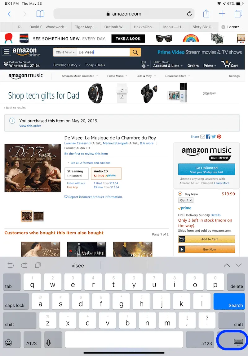 Hi Ken - I'm as confused as others and a screenshot would help (and easily done - HELP HERE) - let me post a screenshot below from my iPad Pro on Amazon w/ the online keyboard (assume that is the one in question?) at the bottom - I've circled a KB icon that is at the right lower corner - is that the issue of your posts? If so, this is simply a feature that removes the KB from your display (sometimes it pops up unwanted and a quick way to hide it) - let me stop to confirm that is your question - still not sure? Dave