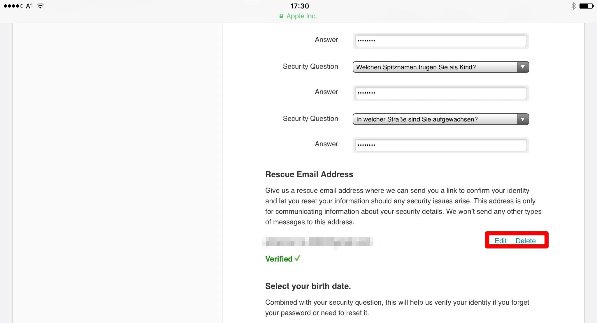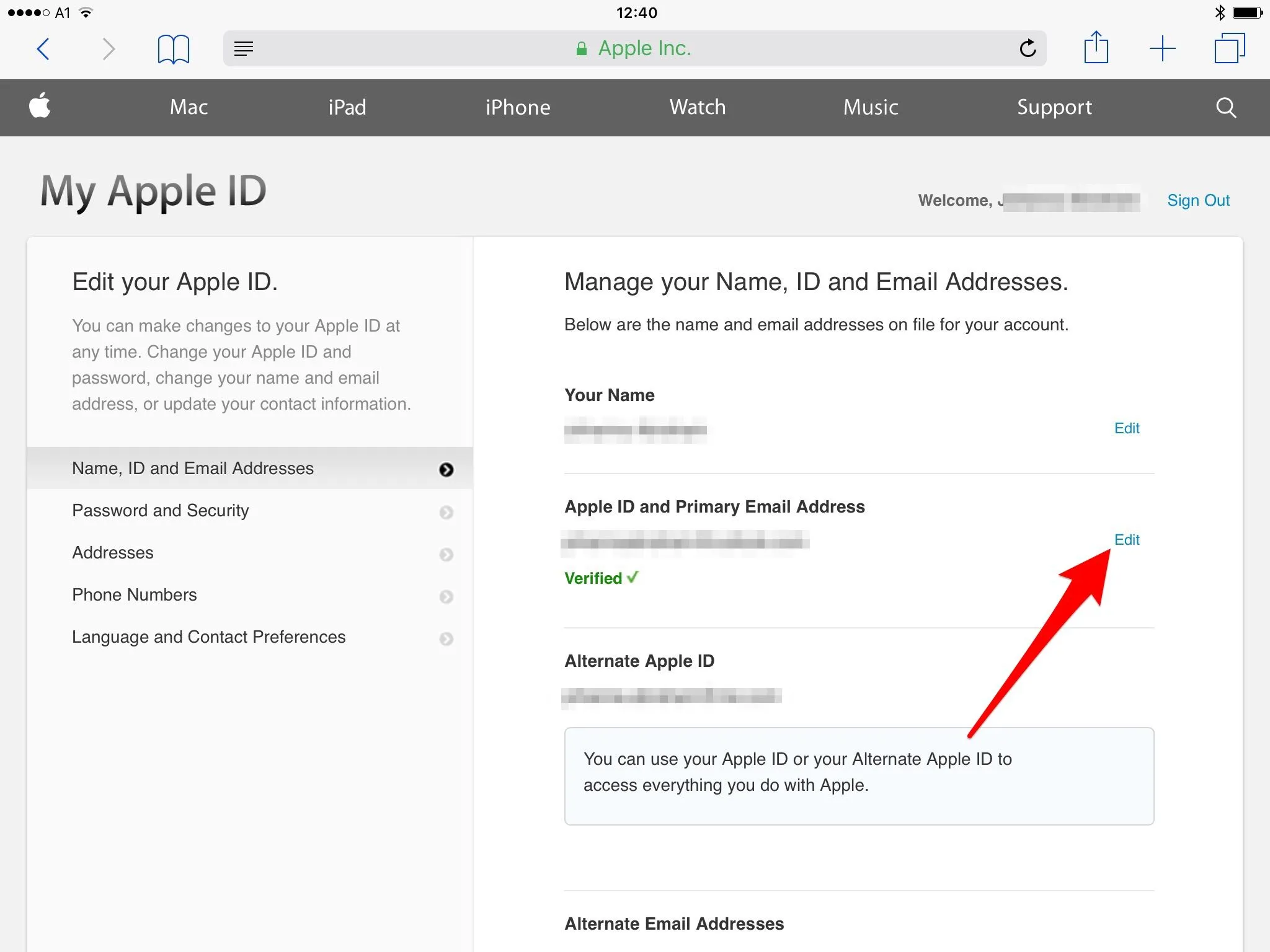 In "Name, ID and Email addresses", tap Edit next to the Virgin email address.