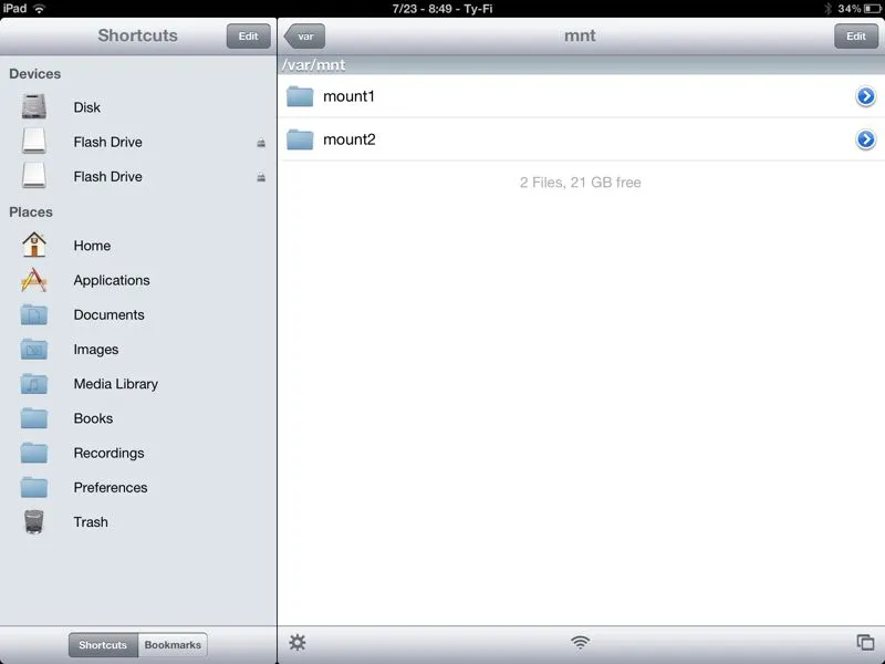 This is two USB flash drives connected and mounted to my iPad as shown in iFile and a picture of what the set up looks like.