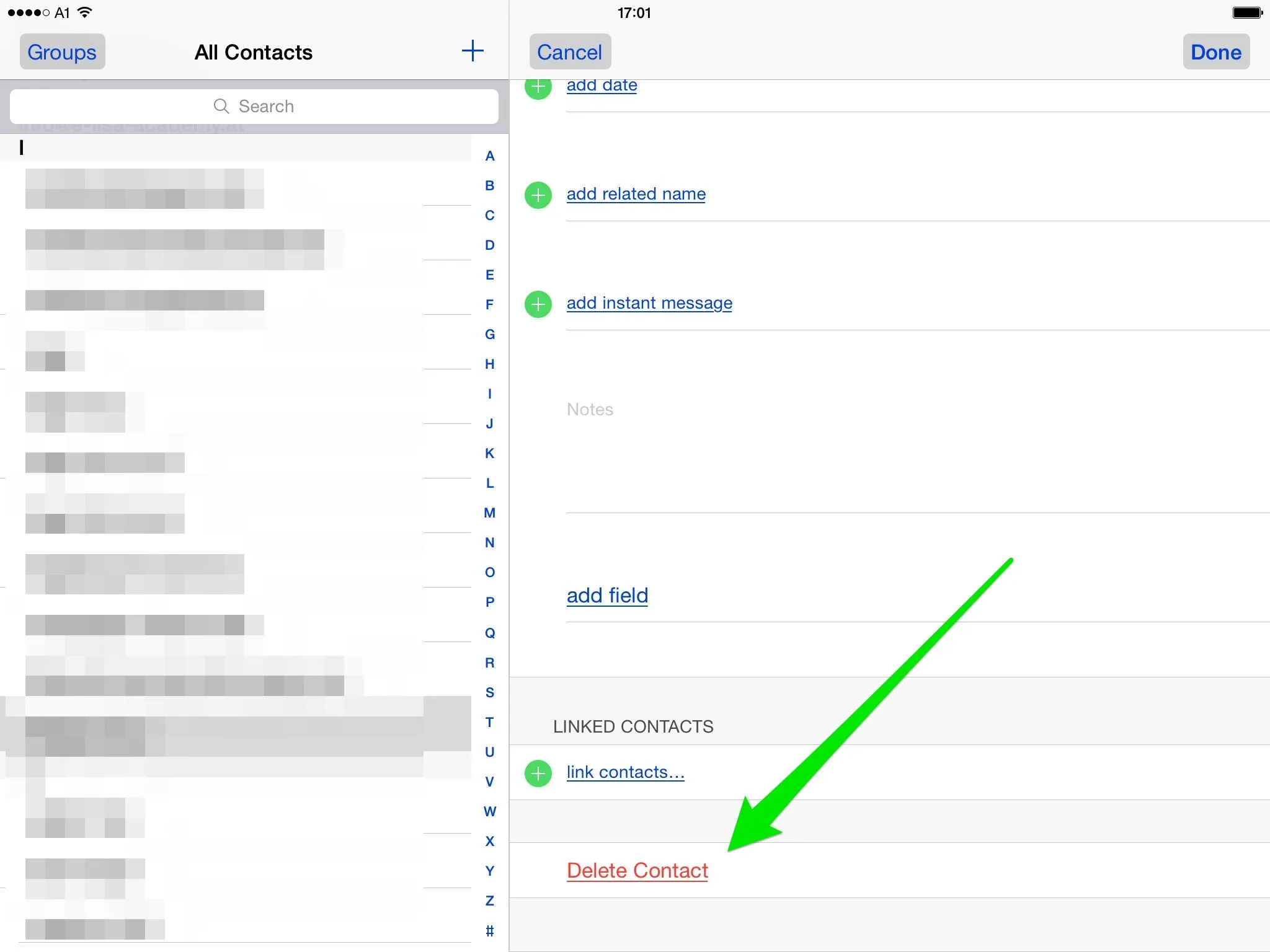 If you want to edit your contacts on your iPad, in the Contacts app, to delete a contact, open it and tap "Edit":