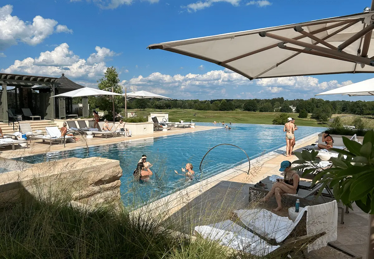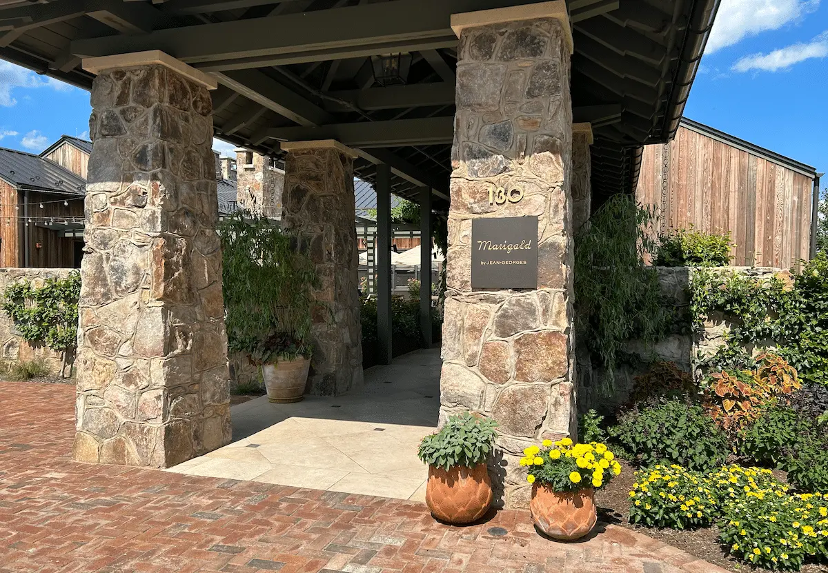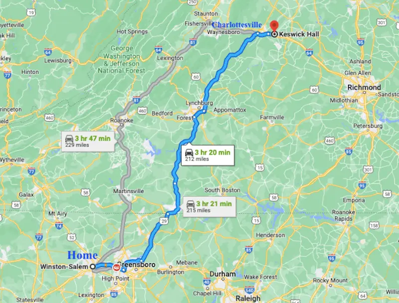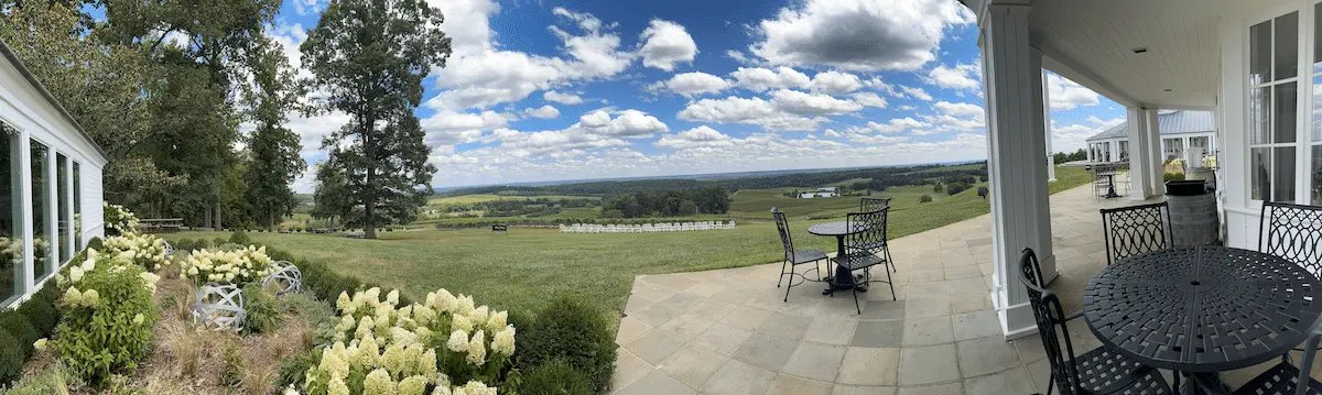 Up the road from Keswick Hall, about a 30 minute drive, is Barboursville which has now nearly a half dozen wineries - our two stops were at Barboursville Vineyards and Horton Vineyards, two old time favorites. Barboursville Vineyards offers many amenities, including food (we had a light salad lunch) and a restaurant (Palladio w/ an Italian emphasis, as expected reading the first quote below). The grounds have the ruins of James Barbour's home, an early governor of Virginia and also rentals (see initial pics below). Susan had a glass of one of their sparkling wines and I a flight of their white wines - purchased a bottle of the Viognier Reserve (this is a popular grape in Virginia and also elsewhere, originating in the northern Rhone Valley).
