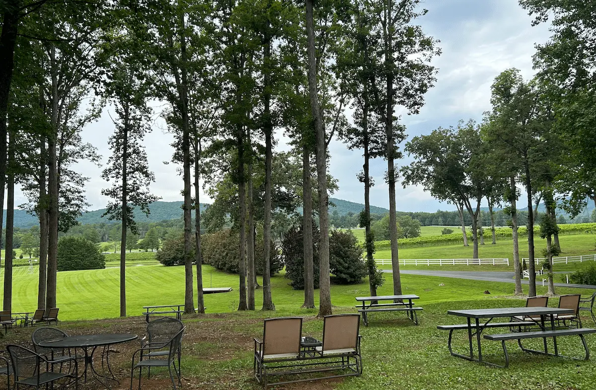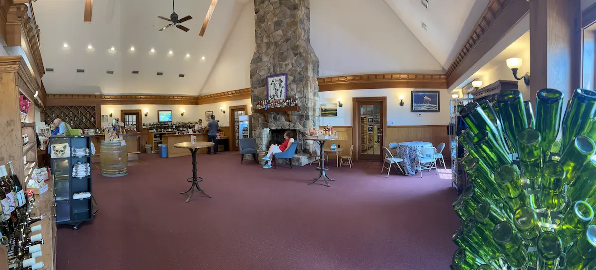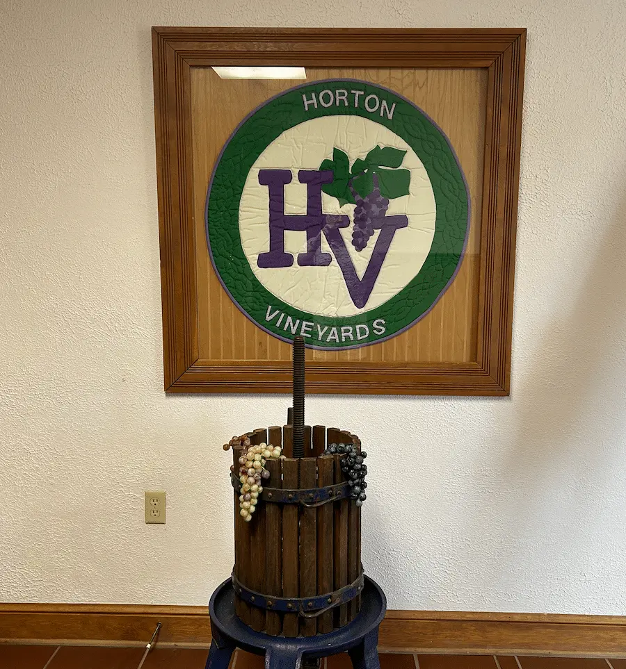 Horton Vineyards was our second stop (Susan likes their peach wine and usually has a bottle at home) (see last pics below) - they offer an astounding number of wines and also a wide variety of other items (vinegars, salsas, etc.) - we shared a flight of six wines, 2 dessert types for Susan and 4 dry whites for me - a new one to me was Petit Manseng, a southern French grape described in the second quote. We did not buy any bottles, but I tasted the P. Manseng today at another winery and made a purchase. Dave