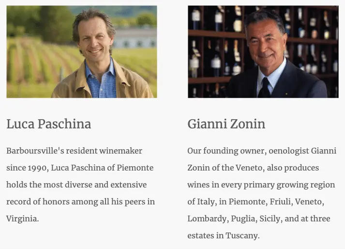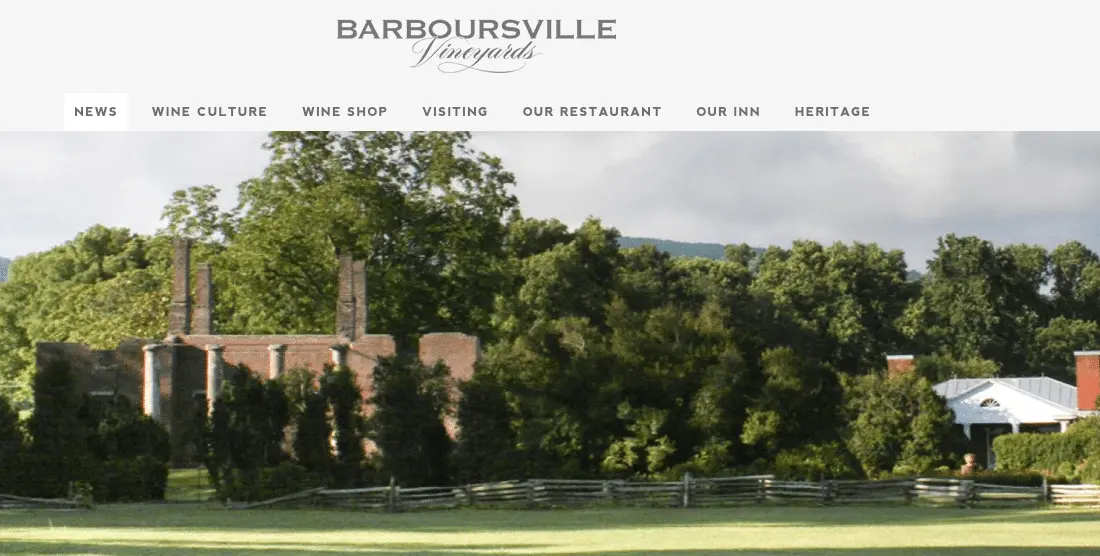 The wine producing estate was founded in 1976 by Gianni Zonin, an Italian winemaker from the Veneto. The winery is built on the grounds of Barboursville, the home of the 19th Governor of the Commonwealth of Virginia, James Barbour. The home was built from 1814 through 1822 and is based on an architectural design provided by Barbour's friend, Thomas Jefferson, since 1969 listed on the National Register of Historic Places. It draws approximately 80,000 visitors a year.The estate is the first producer in the new era of Virginian wine history to plant Vitis vinifera since the failed attempts of Jefferson. Winery manager Luca Paschina first arrived as a consultant in 1990, now estimated among Virginia's leading winemakers. (Source)