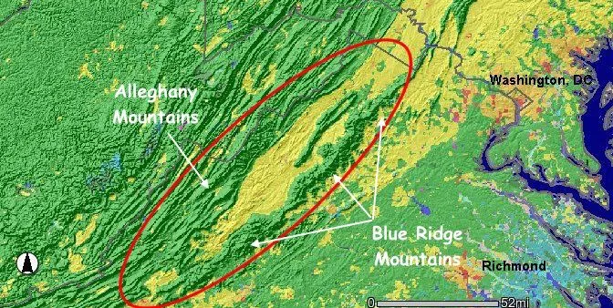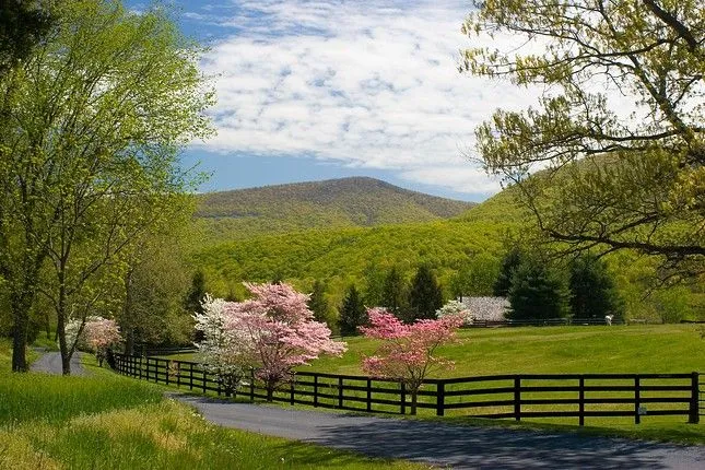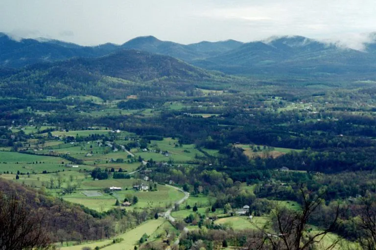 We usually reach the Valley from our home via I-77 to I-88 (angled arrow on 2nd map) - this is one of my favorite drives because of the beauty - the pics below are 'mixed' and show the place from the valley floor w/ picturesque country roads, farms, and historic houses, while spectacular scenery can be seen from the many mountain roads, especially the two mentioned above in the Blue Ridge Mountains. As in my discussions of the Carolina & Georgia Mountains, there are abundant mountain activities, such as hiking and plenty of waterfalls to see; also the fall is a great time to travel in this area w/ the changing colors, as shown in a few of the images.