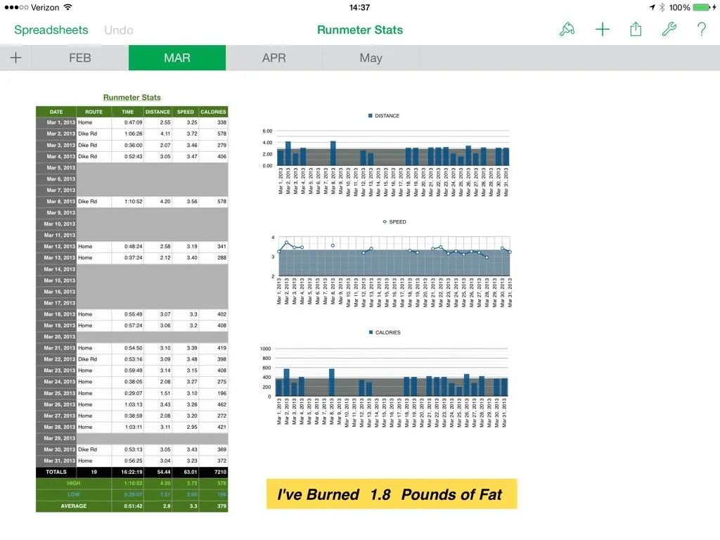 Well, how about that! It's not as fancy as the expensive workout apps but it gets the job done if you can't afford the fancy apps. Spreadsheets are wonderful and are only limited by your imagination. An iPad makes an ideal workout companion