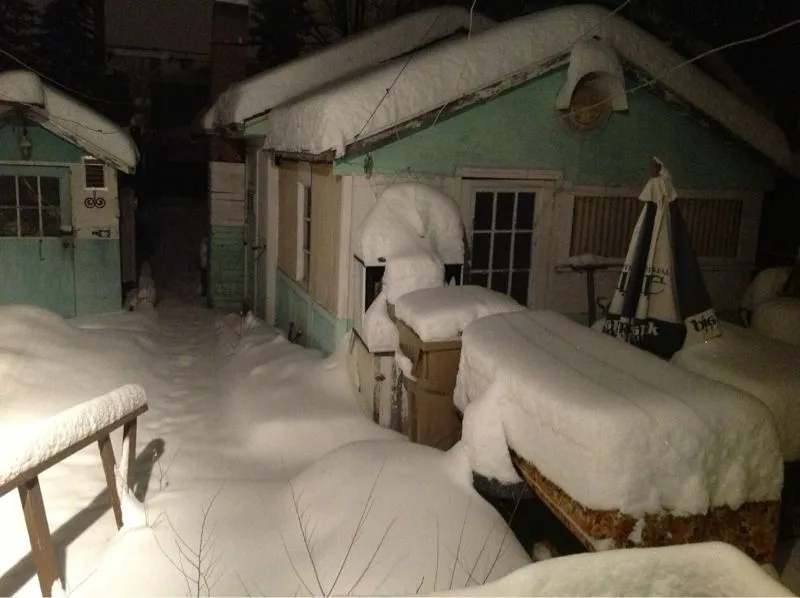 -27°C, and cloudy, with a windchill of -38°C, in Regina at 2:47am. Here's my back yard, very early on Christmas morning.