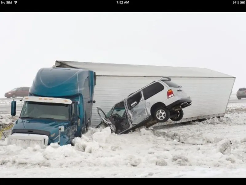 You would have the 'right of way" rule there and you drive on the right. So that big rig had the legal right of way or have I got that wrong. Still, with that slippery ice...not nice for either of them.
