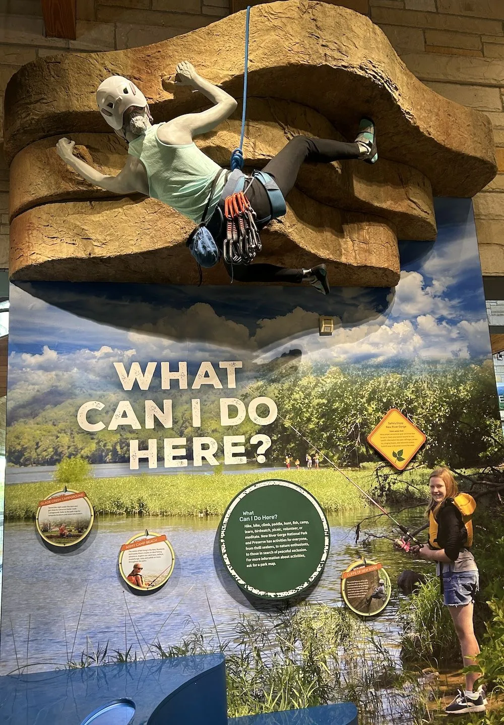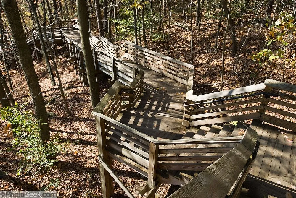 We wanted to do part of the trail around Long Branch Lake, near the lodge building - beautiful lake views below - boat rentals are available (which we don't do anymore - BUT, still take a LOT of boat tours, when possible); also, a fishing pier is nearby (see my pic w/ the catch limits - a state fishing license is needed).
