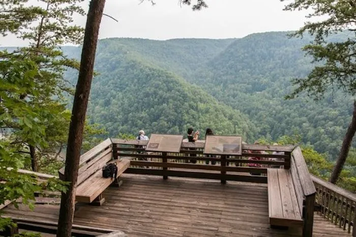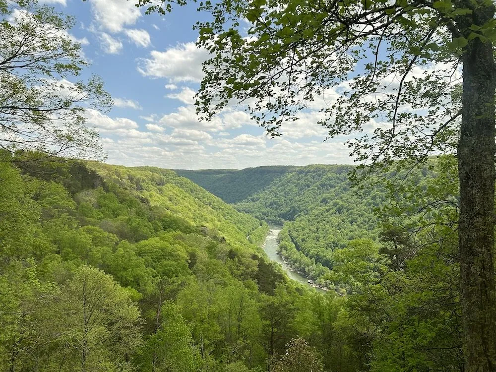 Our last stop for the day was the Pipestem Golf Course for some cold drinks! I walked onto the course just for some pics of the first tee & the ninth green - beautiful tree lined fairways w/ mountain views - a deer was munching nearby; also at the end of the course's parking lot was a scenic outlook w/ some spectacular views of the Bluestone Gorge and surrounding mountains. Dave