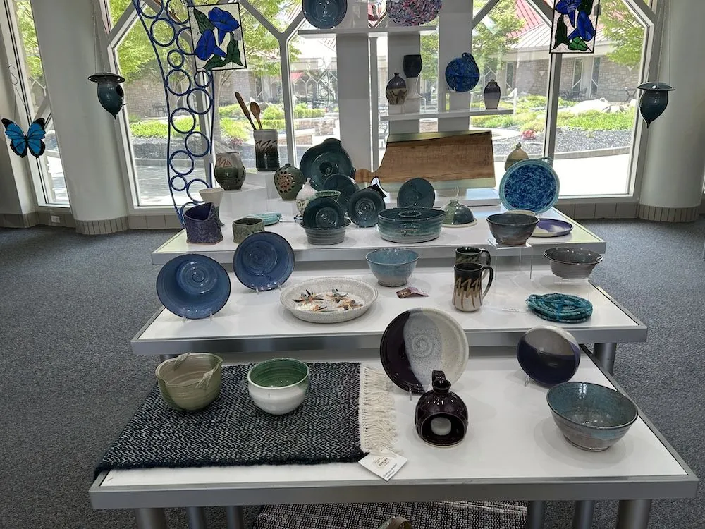 Today, we drove about 40 minutes south to Tamarack Marketplace, a state operated complex featuring West Virginia arts and crafts (see quote below), artisan shops (glass blowing was being done today, others include woodworking, pottery, etc.), large art gallery, bookshop, and a cafeteria type restaurant featuring regional food - we had a nice lunch before browsing. All but the first two pics are my own - probably represents only a third of what was on display for purchase. Highly recommended if in the area (closed on Tuesdays). Dave