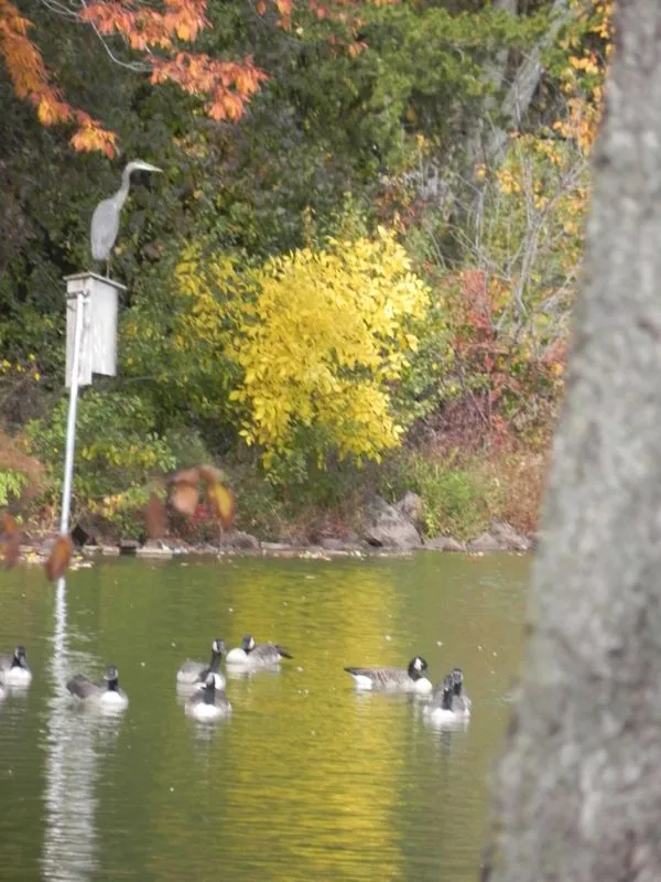 A lot of mallards were around but the geese were everywhere. And one more bird - a great blue heron.