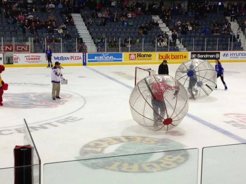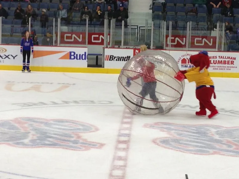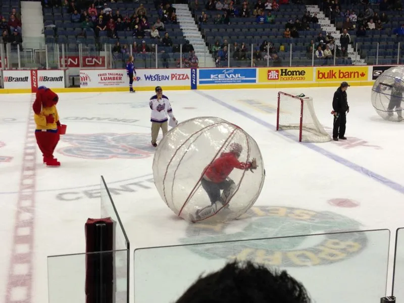 Is the game over yet? How was it?Watching the hamster ball races during second intermission.
